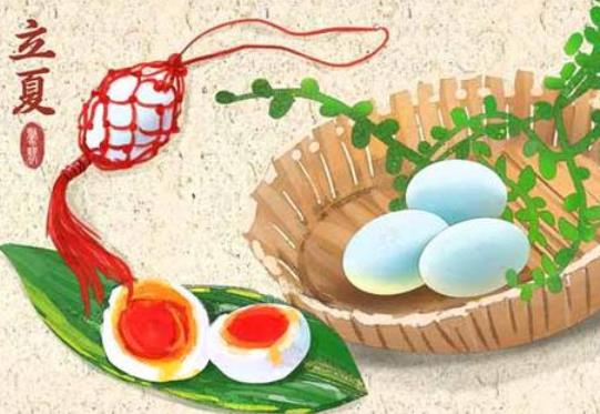 立夏吃蛋是江南一带的习俗。这一天人们用茶叶或核桃壳煮成立夏蛋,民间认为立夏吃蛋能够强健身体。孩子们则喜欢把煮好的鸡蛋用五颜六色的绳子编好挂在胸前,传说这样能保佑孩子不得夏热病。